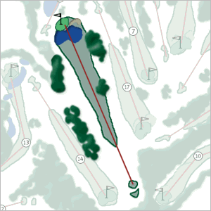 Jack Nicklaus says: Here again, hit it is as hard as you can, trying to miss the mounds on the right and the trees on the left. You have to hit it long enough to play an iron that will be accepted into the green. If you're standing back there with a 3-wood, it's like playing to the hood of a car. It's a difficult pitch if you lay-up short of the water, and it's an even more difficult pitch from over the green. It's a par-5 that most of the fellows will make a lot of 4s on, but you've got to be a little careful.